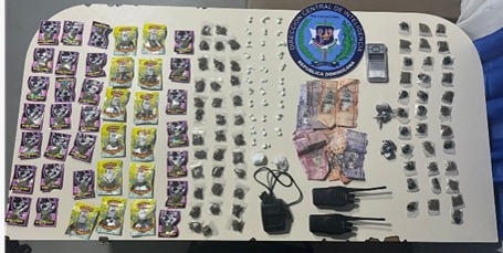 Durante los operativos fueron ocupadas 109 porciones de presunta marihuana, empacadas en fundas plásticas tipo ziploc, de distintos colores y transparentes, así como 36 porciones de lo que aparenta ser cocaína, en polvo blanco y en forma rocosa.