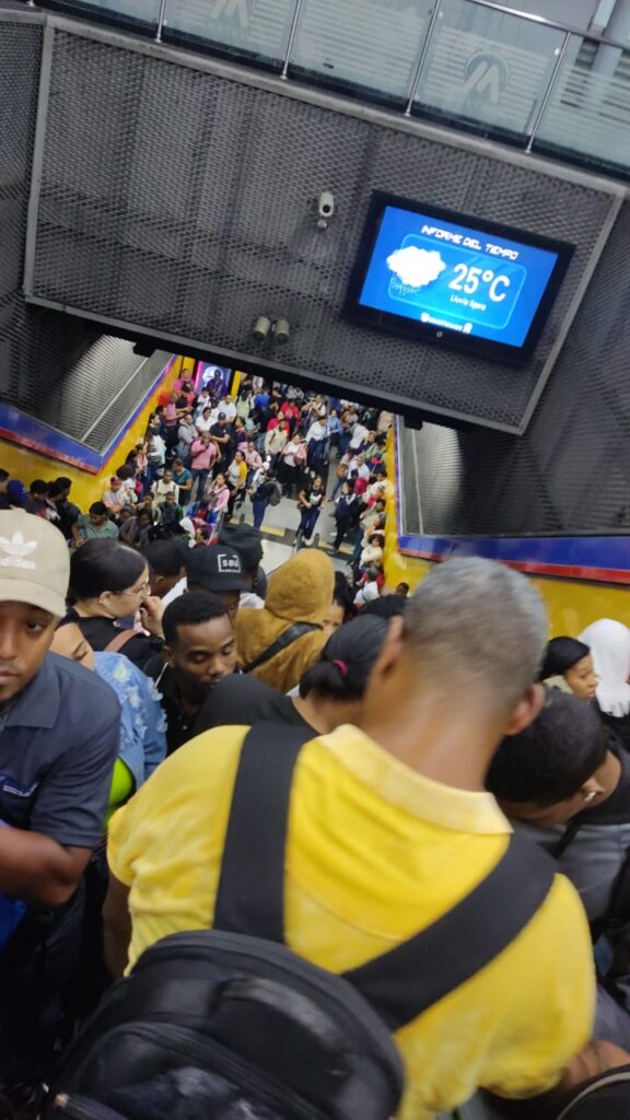 Santo Domingo, R.D.- Cientos de usuarios permanecieron varados este jueves en estaciones del Metro de Santo Domingo, como la Juan Pablo Duarte, Juan Bosch y Centro de los Héroes, debido a las fuertes lluvias generadas por una onda tropical que afecta al territorio nacional.