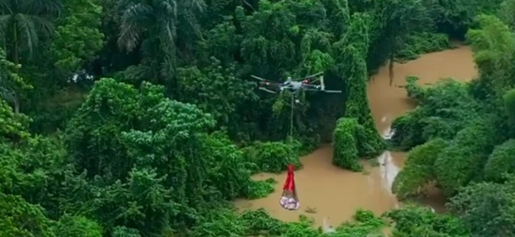Innovación tecnológica permitió asistir por vía aérea a 42 familias aisladas por el desbordamiento del río Cabón