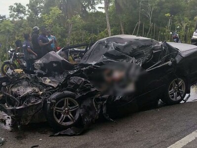 Santana Concepción se desplazaba en un carro marca Toyota, negro, cuando colisionó con un camión tipo volteo, marca Sinotruk, que no portaba placa. El vehículo pesado transportaba desechos sólidos.