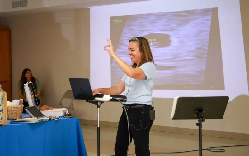 Nikki Schaefer presenta una ecografía en directo el 21 de abril de 2026. / Crédito: Foto cortesía de Nikki Schaefer